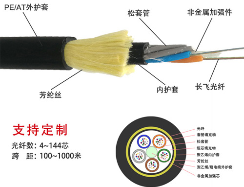 定制PE护套+双层芳纶ADSS光缆(48芯),跨距1200米